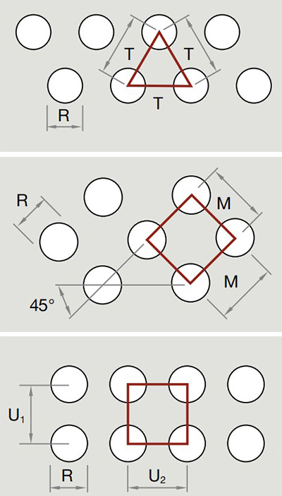 Round, in 60°staggered rows
